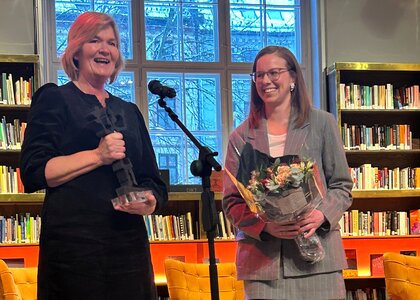 Prisutdeling til Skjåk folkebibliotek v/ Ida Marie Banken og Sigrun Eide - Klikk for stort bildeSkjåk folkebibliotek v/ Ida Marie Banken og Sigrun Eide Randi Forberg Wist